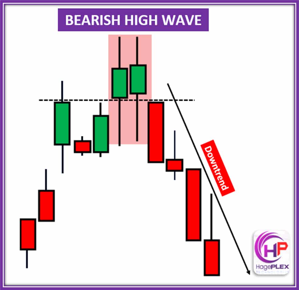 The Bearish High Wave pattern signals a potential bearish reversal, typically forming in an uptrend or after a strong bullish move. It can also appear during periods of consolidation, indicating indecision in the market.