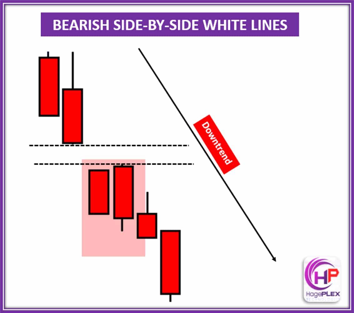 The Bearish Side-by-Side White Lines is a continuation pattern that typically appears during a downtrend. It suggests a brief pause or weak attempt by buyers before sellers resume control. This pattern often forms after a strong bearish candle or a breakdown below support, particularly near resistance zones or after failed bullish recoveries.